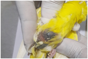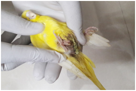 Egg binding is an emergency condition in which delayed passing of the egg through the reproductive tract and it is a life threatening condition if not treated at appropriate time. It is reported in reproductively active birds and most common in female birds which are not exposed to a mate.1 It is a multi-factorial in origin and factors for development of the condition are deficiency of the vitamins and minerals mainly calcium.2 Individual bird variation is recorded due to the age (very young and very old), body score condition (malnutrition and over weight), excessive egg production, restricted movements of the birds (lack of exercise), adverse environmental changes (extreme cold and hot), provision of insufficient water or feed, passing of malformed eggs and improperly positioned eggs, concurrent systemic illness and hypothermia.3 Few literatures reported that female birds which are strongly confirmed to the owners and birds which are more attachment to the mirrors or toys are more prone for development of the egg binding condition.4,5