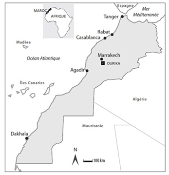 Figure 1 Map of Morocco showing the study area in Upper Ourika valley, Western High Atlas range, Morocco.