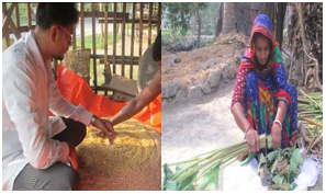 Perceived social impact: One of our project concerns was to assess the social notions on pig rearing. The surrounding people are from same community and there have been no major obstacles of rearing pigs in the research area. Moreover, the farmers are motivated to farming in a hygienic system which was a predemand of the neighbors who are now happy and supportive to the piggery promotion. Nice Foundation research team collected data from the field and has asked 200 neighbors of pig farmers where all of them responded that if the pigs are rearing in a modern farming system then we do not have objections and we will welcome the organizations if they provide them with modern technology because it gives us nutrition and we love to eat pork at least once in a week. Our experiences in the Hindu and Muslim community found that the progressive Muslim leaders do not create any obstacles for rearing but their concern is to rear the pigs in isolated area where peoples’ movement is comparatively less and the odor smell should not come out. Pig manures can be used for the purpose of bio-gas and organic fertilizer in agricultural field. We found that farmers who used pig waste in vegetable field, it gave good result alternative to chemical fertilizer. In other area in Aranghata, Dumuriaa Kawra family has bio-gas plant supported by BRAC. The farmers said, pigs are very friendly and manage themselves as one of the pet animal. The farmers rear those in two systems i.e; at household and open grazing system. The open grazing is at roadside, khasland, fallow land and off seasons in rice fields. During grazing pig droppings and other biological wastes are open which the land owners see it as organic fertilizer and allows in off time to graze. The household level pig droppings are instructed to manage through ring slab. The pig shed models were given to the community for managing the pig wastes. We found positive impact in the agricultural field.