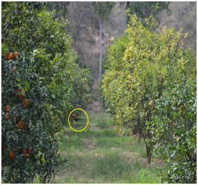 Figure 4 Facets of intervention adopted in the orchard near Sivalik Mountain range, 4(A) Pavo cristatus in the Kinnow orchard.