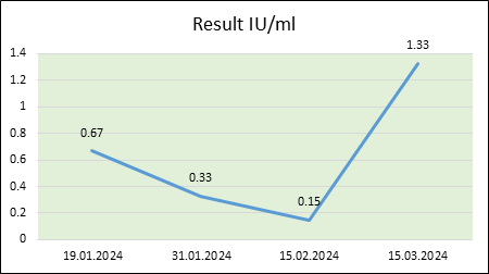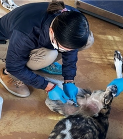 After one month, a follow-up blood sample was collected to reassess Uele’s rabies antibody titer. The results showed a notable improvement in immune response and enhanced rabies titer levels following the separation, improved feeding, and vaccination. Additionally, Uele's overall body condition improved, and her blood tests no longer indicated signs of stress or dehydration. Consequently, Uele was released from quarantine and began a gradual reintegration with the pack, while remaining separated during feeding. Providing her with a larger holding space and exhibit area is expected to further reduce stress and aggression, facilitating a smoother adjustment to her new environment.