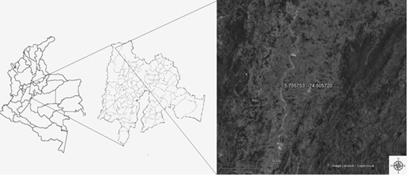 On 12 August 2015, during the dry season, several bird inventories were carried out in the region of Puerto Salgar, Cundinamarca, Colombia, at 5° 45´20” N 74° 30´20” W (the point where was seen Crane Hawk) and 190 m a.l.s., in a pasture savanna used for cattle ranching surrounded by very small relicts of native Gallery Forest, (Figure 1). This image comprises an area of 19.500 km.2). Transect walks of unspecific distance were carried out during morning hours (0430 h 1100 h). The video was captured at 0645 h, at approximately 40 m. from the individual to remain unnoticed. A FUJIFILM FINEPIX-50X camera was used.