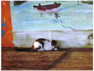 Figure 4 Predation records of birds by cats in semi-domiciliary conditions in a fishing village on Ilha Comprida, off the south coast of the State of São Paulo, Brazil. a. The cat returned with a southern house wren (Troglodytes musculus) in its mouth after hunting.