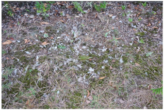 Figure 6 Feathers of a rufous-collared sparrow (Zonotrichia capensis) found in the backyard of a residence with semi-domiciled cats.