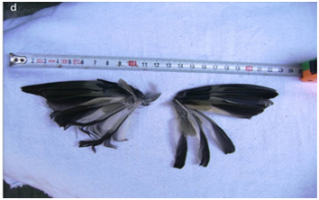 Figure 7 Wings of a palm tanager (Thraupis palmarum) predated by a cat and collected by a tutor at their residence.