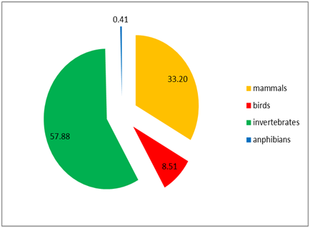 Figure 8 Percentage of animals predated by domestic cats in the insular environment of the Atlantic Forest in Ilha Comprida, state of São Paulo, Brazil.