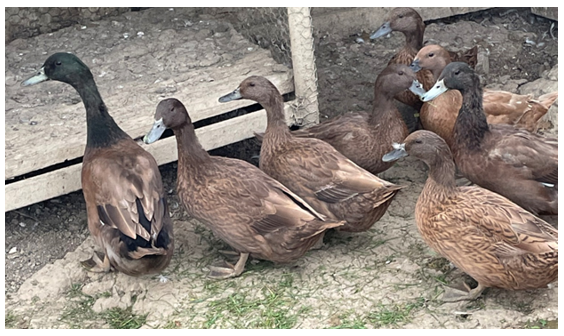 From the first generation, 2 drakes and 6 ducks were selected and placed in the same enclosure (Figure 5). In the second generation, after selection, 4 ducks and an unrelated drake were chosen. The nesting boxes measured 30 x 30 cm. Straw was used as bedding. The feed ration consisted of wheat and corn. The ducks had constant access to grass.