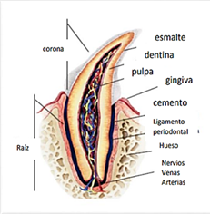 Figure 3 Anatomy and histology of the tooth. Fuente Díaz.2