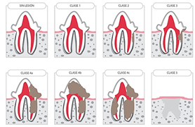 Periodontal disease is one that includes all disorders associated with the tissues that surround and support the dentition.14 In other words, this term refers to infection or inflammation of the periodontium.15 As seen in Figure 5, it affects the gum, cementum, periodontal ligament and alveolar bone. Calderón12 mentions that this disease is the most common pathology in adult cats, with the main causes being bacterial plaque, genetics, age, diet, chewing patterns and systemic health. Depending on the etiological origin it can be divided into: