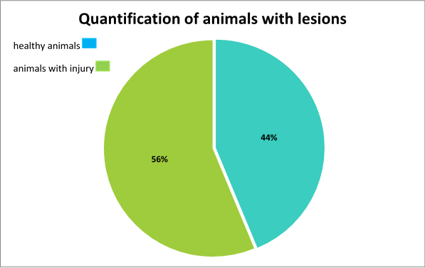 The lesions presented by the specimens were categorized and placed in tables. The variables that were used are qualitative. The data obtained is presented through tables and graphs. The information included is the type of injury and the number of specimens that presented it with percentages.