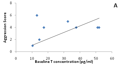 Do baseline T and aggressive behavior covary among individuals?