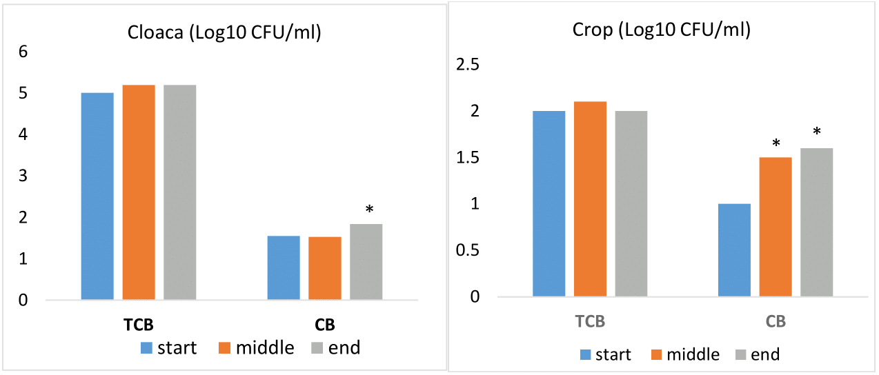 Note: TCB; total count of bacteria, CB; coliform bacteria, *statistical significance (p < 0.05).