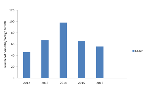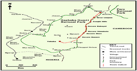 The study area: Geographically, Gashaka-Gumti National Park lies between 6o55’N and 8o05’N and between 11o11’E and 12o13’ E, it falls between Adamawa and Taraba States. It covers an approximate area of 6,731 square kilometers. The Gotel Mountains in the Gashaaka sector of the Park are located to the east of Sabere, these include Chappel Waddi, Chappel Delam and the mountain of Gangiravel, which is the highest mountain in Nigeria (2,419m). Many areas of the Park are more accessible from Cameroon than they are from Nigeria. Greater part of the northern part of the Park is savannah grassland while sector of the Park has a rugged terrain characterized by very mountainous steep slope, as well as deep valley and gorges. The early period of dry season is characterized by the dry sand laden harmattan wind blowing from the North-east to Sahara desert. The local climate is influenced by topography, with different regions of the Park receiving different amount of rainfall, depending on location and altitude. The wettest areas of the Park are located in the mountain ranges of the southern sector of the Park. There is a wide range in humidity from 26-78%. The annual temperature range is approximately 21°C -32°C, while the mean annual rainfall is 1897mm. The Park is blessed with abundance of important wildlife species and this accord the Park the honour of having an ecosystem with high biodiversity. Giant eland (Taurotragus derbianus) and red-fronted gazelle (Eudorcas rufifrons), chimpanzee (Pan troglodytes), African golden cat (Caracal aurata), giant forest hog (Hylochoerus meinertzhageni) are part of animal species present within the park. Rare species such as mountain reedbuck (Redunca fulvorufula), roan antelope (Hippotragus equines), hippopotamus (Hippopotamus amphibius), wild dog (Lycaon pictus) are also available within the park.8 The Park has been recognized as Important Bird Area (IBA) by Nigeria Conservation Foundation .The Park also contains some historic sites one of which is the pre 1918 German fort and garrison top of Gashaka Hill once used as a watch tower by the German military expenditure (Figure 1). Source of data and sampling technique: The target respondents were the tourists that visited Gashaka Gumti National Park. The average annual tourist visitation to Gashaka Gumti National Park for a period of five years inform the choice of 56 numbers of questionnaires that were administered to tourists that were present at the study site as presented in Figure 2. The questionnaire covers different area such as demographic structure of the respondent, their expectation and level of satisfaction on different products and services from the Park (Figure 2).