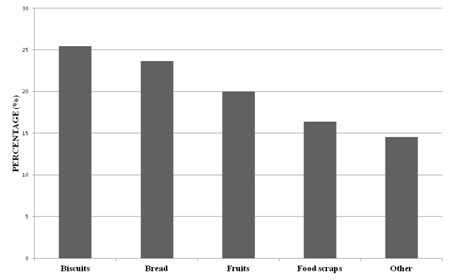 Figure 5 Types of food offered to coatis by the interviewees in the region surrounding the Morro do Imperador forest, Juiz de Fora city, Minas Gerais state, Brazil.