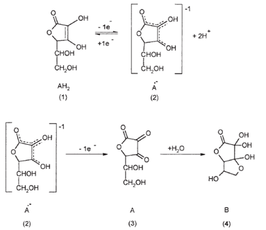 Analytical reagent grade chemicals and double-distilled water were used. Phosphate buffer was prepared by mixing 12.62 mL 0.05 M Na2HPO4 and 2000 mL 0.05 M NaH2PO4. A buffer stock standard solution containing 10 g L–1 ascorbic acid was prepared freshly each day. Working standard solutions of lower concentrations were prepared immediately before use. L-ascorbic of acid analytical grade was obtained from Fluka. All other compounds were obtained from Merck.