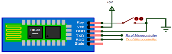 The Bluetooth HC-05 serial port module of Figure 4 is responsible for the communication by sending data from the DSP to the android application interface. Bluetooth Module HC-05 is a class 2 Bluetooth Low Energy (BLE) module with a Serial Port profile which can be configured either as a Master or as a Slave. The Bluetooth module is small and is very simple to use. It has 6 pins; KEY, RXD, RXD, 5V, 3.3V, GND out of which only the RXD, TXD, 5V, and the GND pin were used. The 5V and the GND pins of the Bluetooth module were connected to the 5V and GND pins of the DSP. The pins 30 and 31 of the DSP were initialized as the Bluetooth Transmitter and Receiver respectively as shown in Figure 4. These connections enable Bluetooth communication between the DSP and the android device.