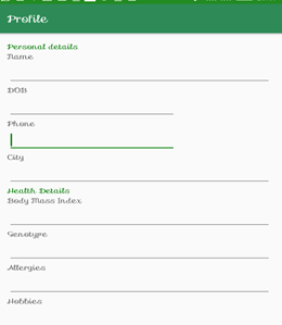 Authentication: Registered users can access their physiological information upon authentication of their emails and password remotely as illustrated in Figure 6. A user is required to input their profile details as shown in Figure 7. This is to enable the mobile application to provide customized solutions for users.