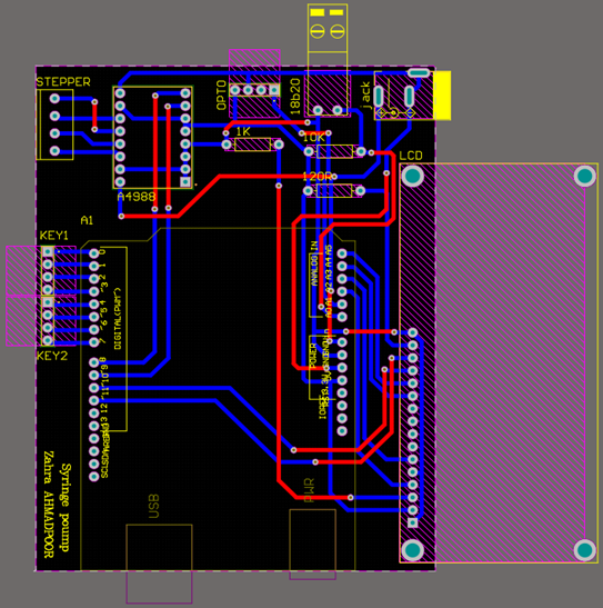 Different syringe pumps are designed and built for smart design Figure 3 shows the PCB of the syringe pump board. But it has no ability to measure the patient's body during injection to prevent unfortunate events for the patient and alert the machine operator if bubbles are detected in the injected substance.