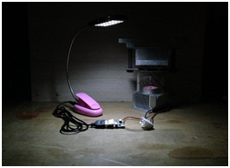 Set up experimental mechanism with the connection of booster circuit as shown in Figure 6. Position thermocouples at the upper and lower surface of thermoelectric chip to detect temperature difference. Turn on the desk lamp after lighting up candle, and observe the illumination irradiated from lamp. During the experimental duration, surficial temperature difference, voltage as well as current induced from thermoelectric chip (power delivered to step-up circuit) and supplied to desk lamp (power conveyed from step-up circuit) will be recorded for each minute. then conduct a performance comparison with commercial product CE8301.