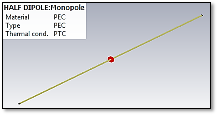 Figure 1 The design of the half-wave dipole antenna in CST Microwave Studio 2019 software using PEC material.