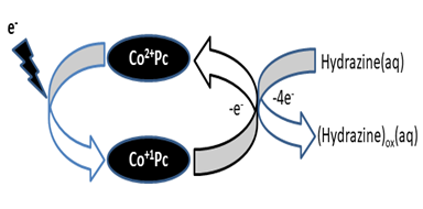 poly-Co+2Pc-rGO+ N2H4 + OH— → [poly-Co+1Pc-rGO]— (N2H3)+ + H2O + e— -------(20)