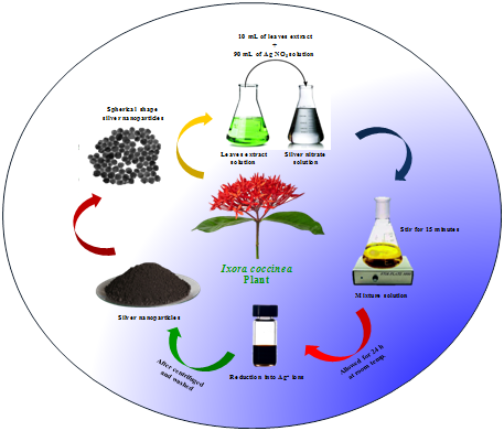 All chemicals utilized were of analytical grade. AgNO3 (Silver nitrate) was purchased from Merck. MB dye was bought from S.D fine chemicals limited then utilized without further purification. Ixora coccinea leaves were collected from the college of S.I.E.T, College campus.