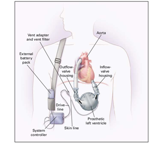 The human heart pumps blood throughout the body via the circulatory system, supplying oxygen and nutrients to the tissues which helps bodies function and removing carbon dioxide and other waste products. 1 Cardiac failure happens when the heart cannot pump enough blood and oxygen to support other organs.2 In USA about 5.7 million adult patients are diagnosed with heart failure and one in 9 deaths in 2009 included heart failure as contributing cause.3 The European Society of Cardiology represents countries with a population of more than 900 million, and in their last guidelines they reported that there are at least 26 million patients suffering this disease in those 51 countries4 Heart failure is a serious condition, but it does not mean that the heart has stopped beating. At present time, cardiac transplantation remains the gold standard of cardiac replacement therapy. However, the supply of donor hearts is limited and therefore is not an option for many patients because of age and other conditions. Alternative forms of cardiac replacement therapy include cell therapy, xenotransplantation, ventricle assist devices implantation and total artificial heart. Left ventricle assist device is more and more reliable, efficient and its size is becoming smaller with technology development.