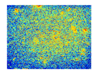 In this study, composite Au-CNT contact layers were fabricated by adding CNTs to the upper hemispherical and the lower planar contacts followed by encapsulating the CNTs with a sputtered gold film prior to deposit the sacrificial layer (lower contact design) or electroplating the structural layer (upper contact design). The CNTs were deposited by spin coating a mixture of CNTs that were suspended in isopropyl alcohol. After depositing the CNTs, a thermal image, shown in Figure 6, was taken to qualitatively evaluate the distribution of the CNTs on the lower contact.15 The more readily identifiable CNT groupings or “clumps” appear as the bright green and red spots, indicating a higher CNT concentration. Image analysis revealed approximately a 55% coverage of the Au-CNT composite film on the lower planar contact area. The addition of CNTs into the lower micro-contact material is theorized to enhance thermal conductivity but it also tends to increase film resistivity since the CNTs disrupt the normal homogeneity of a thin film Au contact.