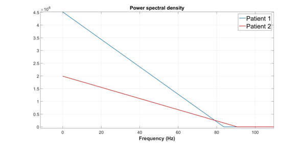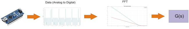 Where G(.) is a given universal form, Yi are power spectral density from FFT using the Arduino data (Figure 4), M is the number of points taken by Arduino, are the FFT frequencies estimated with the internal latency for the analog to digital (A/D) conversion considering the PWM frequency of 1KHz and the set of N parameters to be identified. Mathematical models (1) and (2) are depicted in Figure 5: This is an ongoing project; however, to give a flavor’s overall idea, two real measurements are shown in Figure 6 taken from two different patients. These measurements suggest the glucose’s concentration could be related to the power spectral density of the FFT. The continuous decreasing behavior in Figure 6 inspires a further simplification in model (2):