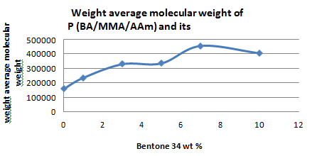 Figure 1A Effect of bentone 34 on the weight average molecular weight of P (BA/MMA/AAm) and its composites.