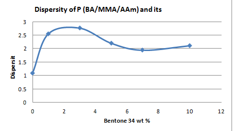 Table 2 Effect of bentone 34, on the weight average molecular weight, the number average molecular weight and the Polydispersity of P(BA/MMA/AAm)