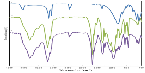 Figure 2A FT-IR spectrum of bentone 34, 2B: FT-IR spectrum of P (BA/MMA/AAm), 2C: FT-IR spectrum of P (BA/MMA/AAm)/ bentone 34 composite.