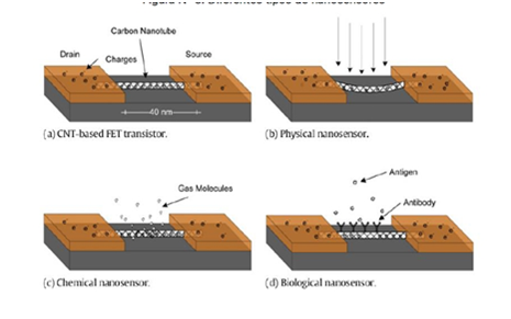 A nanosensor is a device with a size about 10-100 um capable of perform simple tasks in addition to detection. Is not only a nanoscale device but a device that allows the use of the properties of nanomaterials and nanoparticles to detect and measure nanoscale events.