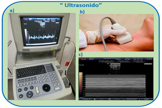 On the other hand, in Figure 1 (A), the procedure for obtaining ultrasound (US) records is shown, b) the patient is also placed in the dorsal or supine position with the head turned to the side, it was identified then the carotid artery using a linear transducer in configuration M, this is "Movement Mode" to observe the variations of the arterial diameter, in that position the linear transducer is maintained and c) the movement is displayed on the screen and the video is recorded by 60 seconds. After the video acquisition, a digital image processing started in the LabVIEW software was performed, the data analysis was complemented on the Matlab platform from which the time and amplitude signals could be obtained, which when plotted show the carotid pulse. Having time versus amplitude graphs for both techniques, a comparison of the PPC with the ultrasound was performed for each subject.