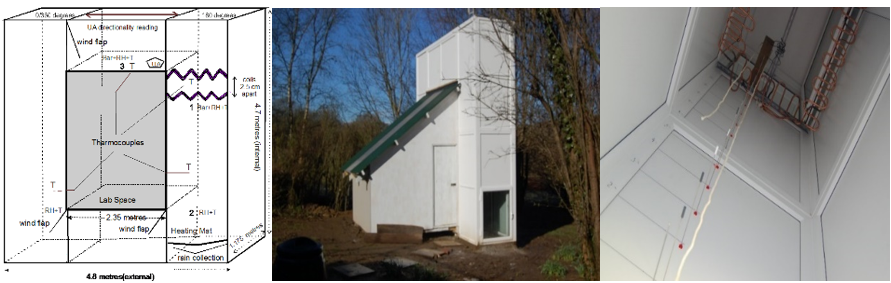 The results of more than 100 experiments under different external weather conditions, ranging from temperatures as high as 25°C and low as 5°C, with different relative humidities, indicated that condensation caused by the refrigeration at the coils of a small parcel of air inevitably led to measurable airflow. Should the relative humidity be low, for instance below 60 per cent, such that cooling of the air parcel failed to bring about saturation and condensation, then no airflow could be detected even though the parcel of air had cooled by 10°C relative to the average air temperature in other parts of the structure. That finding, in contrast to experiments where condensation was detected by ensuing rainfall and its collection, indicated that unidirectional airflow was a necessary correlation of condensation.