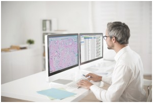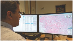 In traditional pathology workflows, many steps in the specimen preparation process are performed manually, making it difficult to keep track of specimens and where they stand in the process. Using a digital histopathology solution permits histopathologists to identify and keep track of where specific specimens stand in the review process, and facilitates the department to determine whether schedules or protocols are adhered to, or why delays may be occurring (Figure 5). Among the benefits of a digital histopathology solution is the fact that digital slide images can be more appropriately and safely distributed for exterior consultation, by being sent directly to the external consultant, or by giving the professional access to view the images from a secluded location. Efficiencies in lab operations are another promising mark of digital pathology. Histopathologists have traditionally performed diagnostic readings by viewing glass slides while standing (or sitting) over a microscope. A noticeable but important element of histopathology laboratory digitization is that it basically changes the pathologist’s primary workstation, moving the histopathologist from the microscope to a computer workstation. This change can help to ease the physical fatigue and tension placed on pathologists from leaning over a microscope for many hours a day (Figure 6).