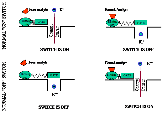 The chief drawbacks of the gramicidin switch were the need for the displacement of the relatively large gramicidin molecule for switching and the absence of independent gate. Genetically engineered protein pores4 provide another approach to making molecular switches for biosensors. Protein pores could provide speed and sensitivity as transducers. However, these relatively large protein molecules are difficult to maintain outside the living cell.