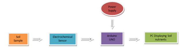 Here, we have established an electronic system for the determination of soil macro nutrients. The technique is based upon Flow Injection Analysis (FIA) in which two electrodes work as ‘flow-through’ in the electrochemical sensor for the recognition of nutrients. The system comprises of following components (Figure 1).