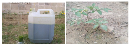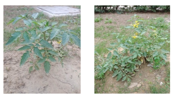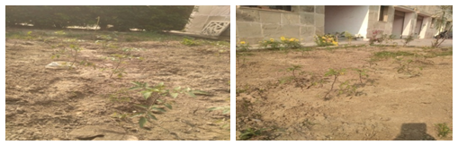 A best location for gardening was selected. Crop was selected considering the prevailing weather conditions (here, tomatoes). 8potholes were dug twice as deep and twice as wide as the pot size. In each holes 3tomato plants were planted. The crops were water the plants regularly. Soil tests were performed at regular intervals by using electrochemical sensor. The soil moisture value and NPK values were noted. Tomato crops were provided with Azadirachta indica extracts at regular intervals. Do note down the concentration of aqueous solution of Azadirachta indica extract every time. All the plants were given different amount of concentration of solution at several time gaps to know all the physical changes in plant growth and keep record of NPK value of soil. Figure 4 shows the crop site when the tomato plants were initially planted (Figure 5 & Figure 6) (Table 1).