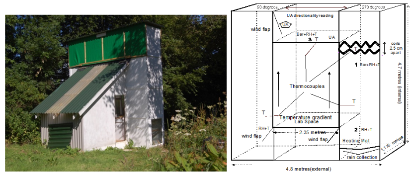 Figure 2 The experimental chamber for measuring absolute humidity changes and airflow. The lean-to is the laboratory.