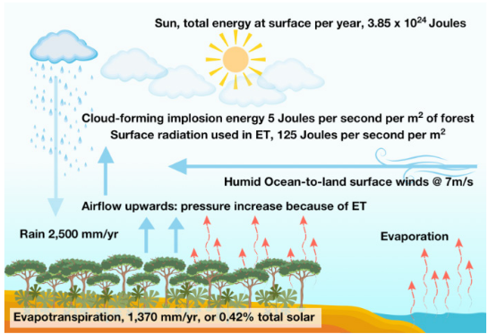 biotic pump theory, cloud-forming, evapotranspiration, rainforests, condensation, airflow