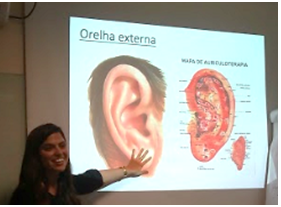 In the special case of the meeting in which the anatomy of the pinna and the studies with reflexology were discussed, the nerve ramifications were approached by a Western biomedical perspective, Traditional Chinese Medicine and the French school of Paul Nogier. Embryological and histological questions were raised to explain how Western anatomy and Eastern medicine correlate, being recognized as a possibility of treating a series of disorders, whether of an energetic, physical or emotional nature. With this workshop, we also realized that it is possible to treat muscle pain and tension, helping to recover muscle tone through stimulation points in the ear.