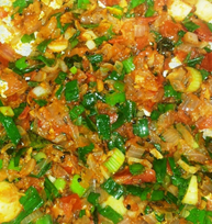 Onion leaves are used as a leafy vegetable and consumed as a raw form like Sambol and also cooked with tomato.