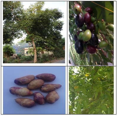 Jamun, Syzygium cumini belongs to Family: Myrtaceae and is also known as Eugenia cumini Druce; Eugenia caryophyllifolia Lam., Eugenia jambolana Lam., Eugenia djouat Perr., Syzygium caryophyllifolium (Lam.) DC., Syzygium jambolana (Lam.) DC., Syzygium jambolanum DC, Calyptranthes oneillii Lundell, Calyptranthes jambolana Willd. and Myrtus cumini L. (Figure 1). It is an indigenous plant to Indian subcontinent and it is commonly grows in India, Bangladesh, Ceylon, Pakistan, and Myanmar. Jamun is a rapidly growing tree, which is 100 feet tall and start fruiting in summer.10,11 The fruits are produced in clusters and each cluster consists of a few to 10 or 40 fruits. Jamun fruits are round to oblong in shape and 1/2 to 2” long (Figure 1). The Jamun fruits are green coloured and turns from light to dark purple or even black after ripening.10,11 Their taste is sweetish sour and eating of Jamun fruits makes the tongue purple. The other names of Jamun are Indian blackberry, black plum, Duhat Jambu, Jaman, Jambul, Jambool, Java plum, Portuguese or Malabar plum.12,13 Jamun has several beneficial effects on many ailments.11 Despite this fact, Jamun may have some adverse effects, if eaten in excess or during certain conditions. Since it lowers blood sugar, it should be avoided before one week and a minimum of two weeks after surgery as it may have adverse effect on healing. Eating of Jamun empty stomach and also after drinking of milk may produce adverse effect. Breast feeding mothers and pregnant women should not eat Jamun. Eating of Jamun in excess amount may lead to cough, sputum accumulation in lungs, body ache and fever.11