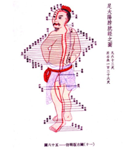 Figure 11 Ming dynasty painting of a pose designed to reveal the foot, taiyang (great yang), posterolateral Bladder (BL) ‘main channel’ or ‘meridian’. In this individual it appears to be arising from not from the upper margin of the orbit as shown in later drawings but the surface of his nose.
