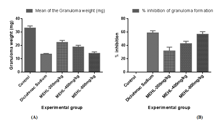 Inhibition (%) = 1- {Weight of granuloma (extract or standard drug)/ Weight of granuloma (normal control)} X 100