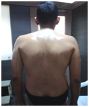Physical findings such as loss of spinal mobility, with restriction of flexion and extension of the lumbar spine and neck were found. Restriction in expansion of the chest was also found. Pain in the sarco–iliac joints was elicited with directed pressure. Patient’s posture undergone characteristic changes such as, exaggeration of thorasic kyphosis, stooping forward of neck and loss of lumbar lordosis were present (Figure 1 & 2). Neck pain and stiffness were noticed which indicates of advanced disease. Bony tenderness accompanies back pain or stiffness. There were no extra articular manifestations in present case.