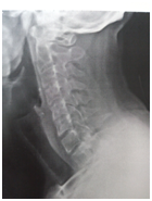 The baseline score (before starting our treatment) on BASDAI was ‘4.5’ and after 6 months completion of treatment the score on BASDAI was reduced to ‘0.9’ i.e., there was ‘80%’ of improvement found. Good improvement was found in ‘fatigue/tiredness’ (80% relief), ‘neck/back/hip pain’ (75% relief), ‘tenderness’ (80% relief), and ‘intensity as well as duration of morning stiffness’ (88% relief). Patient’s sleep, appetite and quality of life were improved. There was noticeable improvement observed (thorasic kyphosis/stooping of neck forward) in X– Ray of cervical spine (Figures 3&4). Knee joint pains were totally relieved and patient’s posture got improved along with relief in low back ache and neck pain. No adverse effects were reported by the patient. The patient got clinically meaningful improvement by internal medicines along with dietary restrictions (advised to avoid dairy products and to drink hot water) and life style changes. Ayurvedic treatment seems to be promising in the management of AS with in short period of time and without causing any adverse effects.
