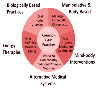 The NCCAM classifies CAM therapies into the five illustrated domains: