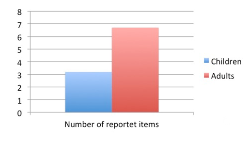 We trailed 20 school children mean age 11,1 years (+/- 3,2) with our CNSQ after they had received bilateral acupuncture at LI 4 with Pyonex needles. Children used to rate to the lower end of the Likert scale. Children never reported bruised and pricking. Children gave account to significantly fewer items than adults. Children chose items warm and heavy more often than adults to describe de qi sensations. Adults and children reported similar results for spreading, pressure and fading (Table 1). Children indicated Pyonex acupuncture to be nearly pain free with a mean score of 0, 95 (+/- 0,95) on visual analogue NRS 11. Adults reported significantly more items namely 6,7 items and children 3,2 items (Figure 3).